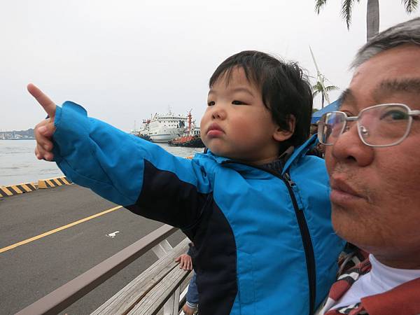 上次初二回娘家時有去布袋港走走,當時小J 看到岸邊停靠開往澎湖馬公的船非常有興趣,一直boat、boat的比著,外公外婆看在眼裡也記在心裡,這次回南部外婆就說要帶小J去高雄旗津坐船,然後晚上去愛河邊看煙火,整個行程根本就是完全根據小J 的喜愛設計嘛~果然阿公阿嬤都很疼孫子!!